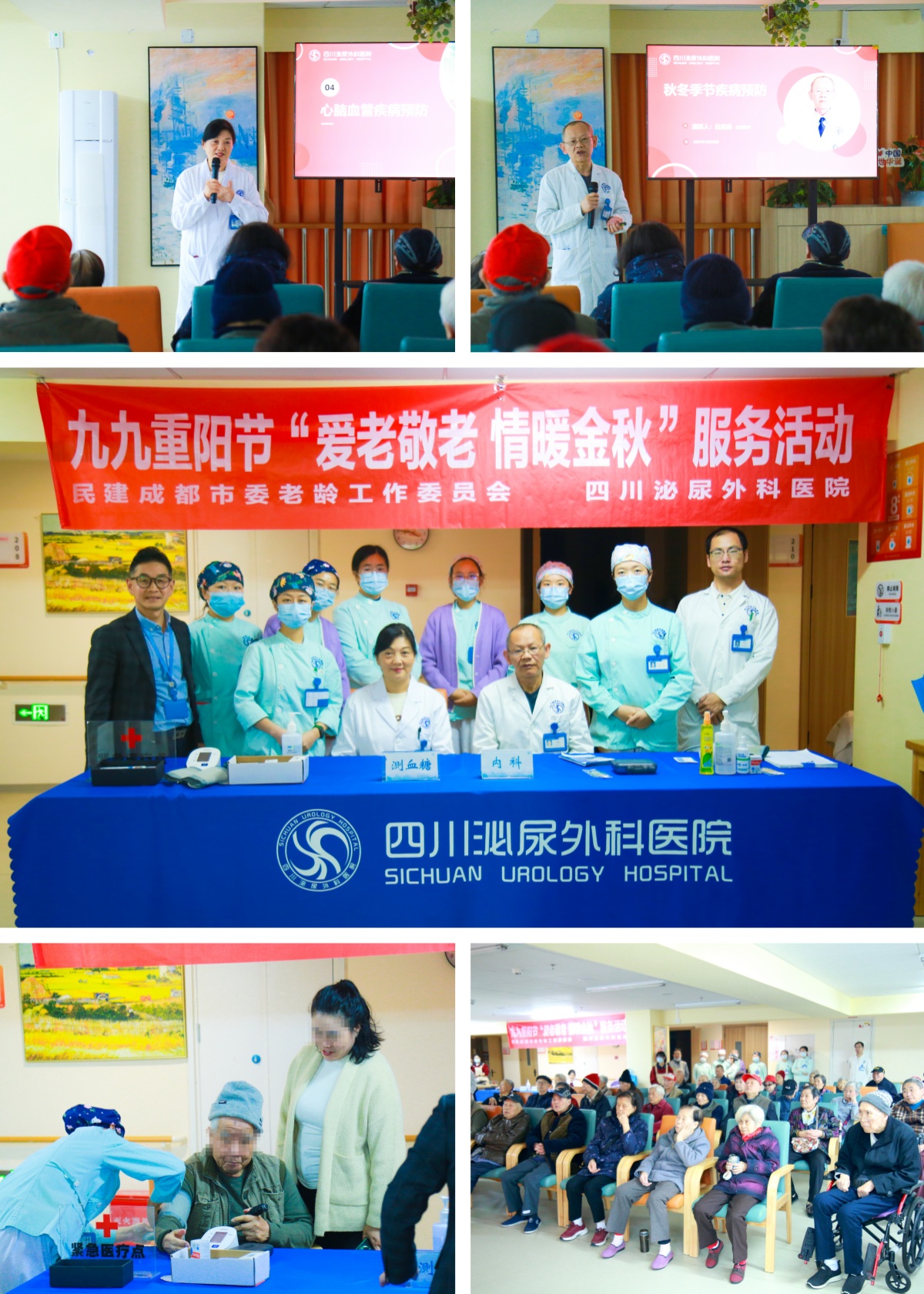 金秋送爽,丹桂飘香。在一年一度的重阳节来临之际,为弘扬中华民族尊老、敬老、爱老的传统美德,切实关爱老年群体健康,四川泌尿外科医院组织医疗专家团队深入社区、养老院及高龄老人家中,开展“重阳节爱老敬老·健康送到家”系列义诊活动,将专业、贴心的健康服务送到老年人身边。