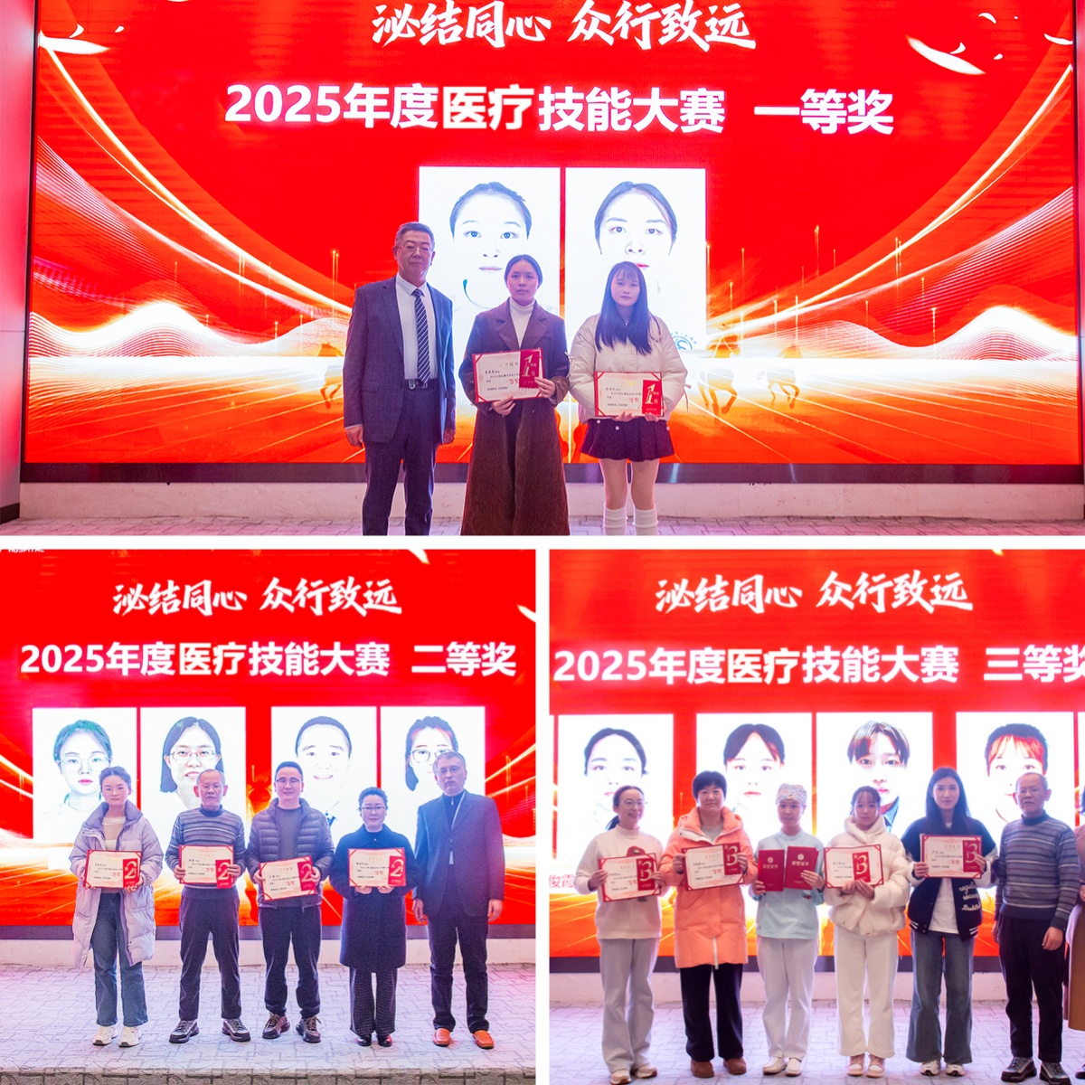 2025年度医疗技能大赛的获奖团队依次上台接受表彰,一、二、三等奖的颁发,是对医护人员扎实专业技能、严谨工作态度和卓越团队协作能力的充分肯定,展现了川泌人守护生命的硬核实力。