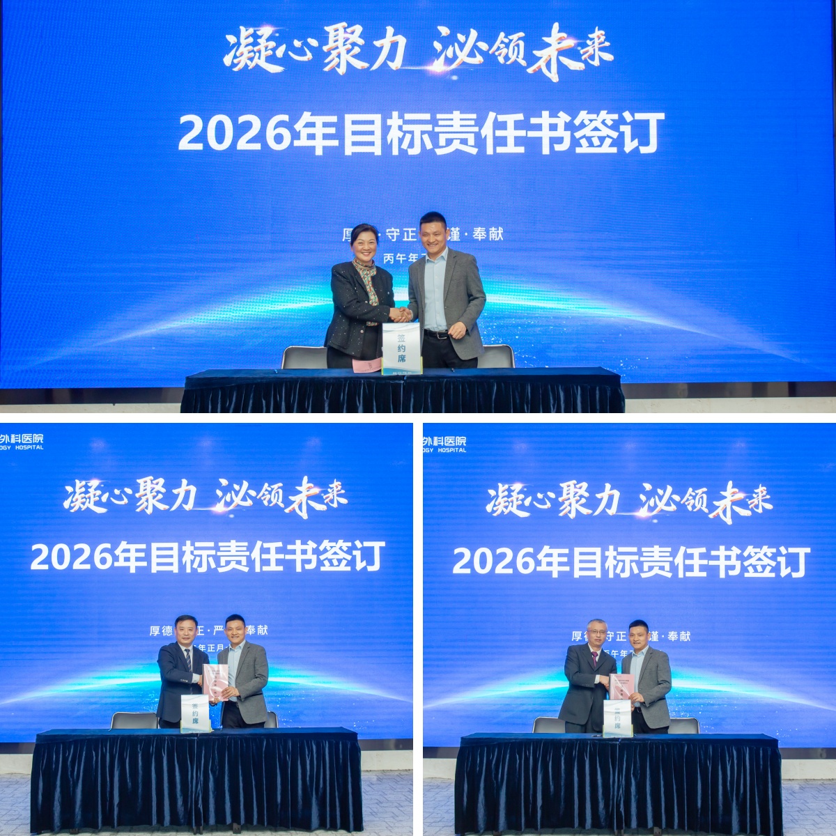 目标就是方向,责任就是使命。为确保年度各项任务有效落实,会议举行了庄严的2026年度目标责任书签订仪式。各科室负责人依次上台,签订了新一年的目标责任书。一纸责任状,承载着沉甸甸的使命与担当,象征着川泌各科室同心同德、共赴目标的坚定决心。