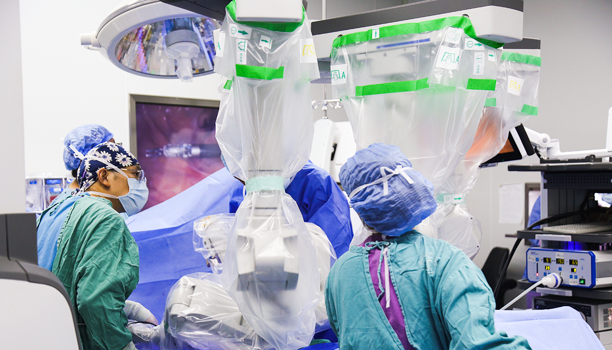 手术台上,魏强教授操控着手术机器人,在盆腔内进行手术操作。机器人手术的优势具体体现在: