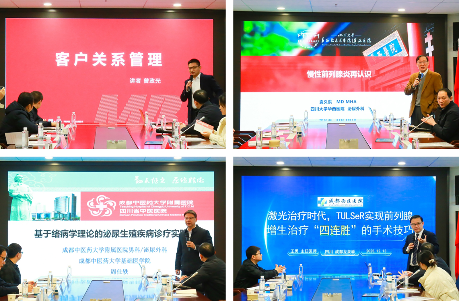 学术交流环节,多位专家围绕基层实际需求展开专题授课。四川泌尿外科医院曾政光教授、四川大学华西医院袁久洪教授、成都中医药大学附属医院周仕轶教授、攀钢集团总医院王勇教授分别就经尿道激光选择性前列腺剜切术治疗前列腺增生症、慢性前列腺炎的再认识、络病学理论在泌尿生殖疾病中的应用,以及医患沟通与患者管理等主题进行了深入讲解。